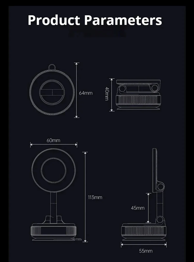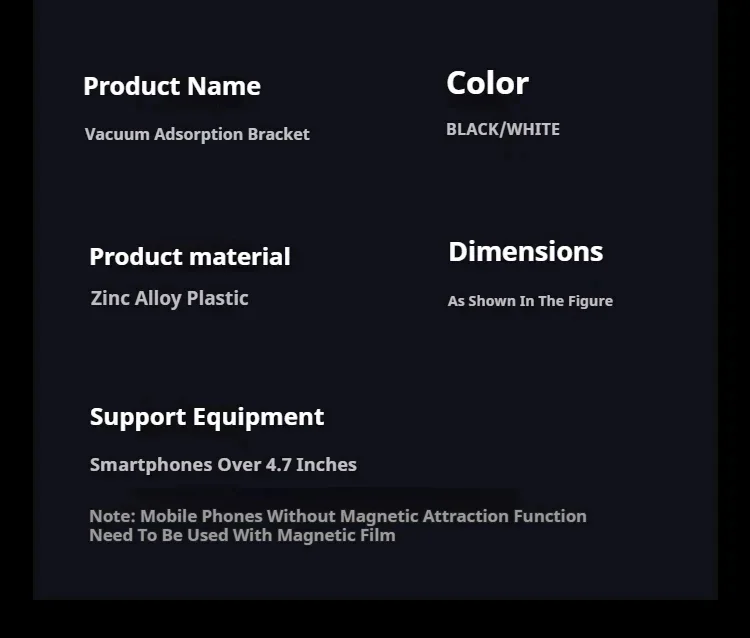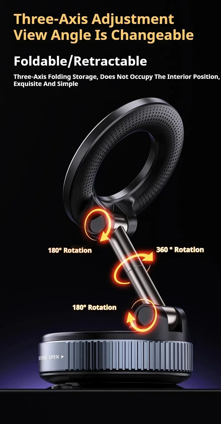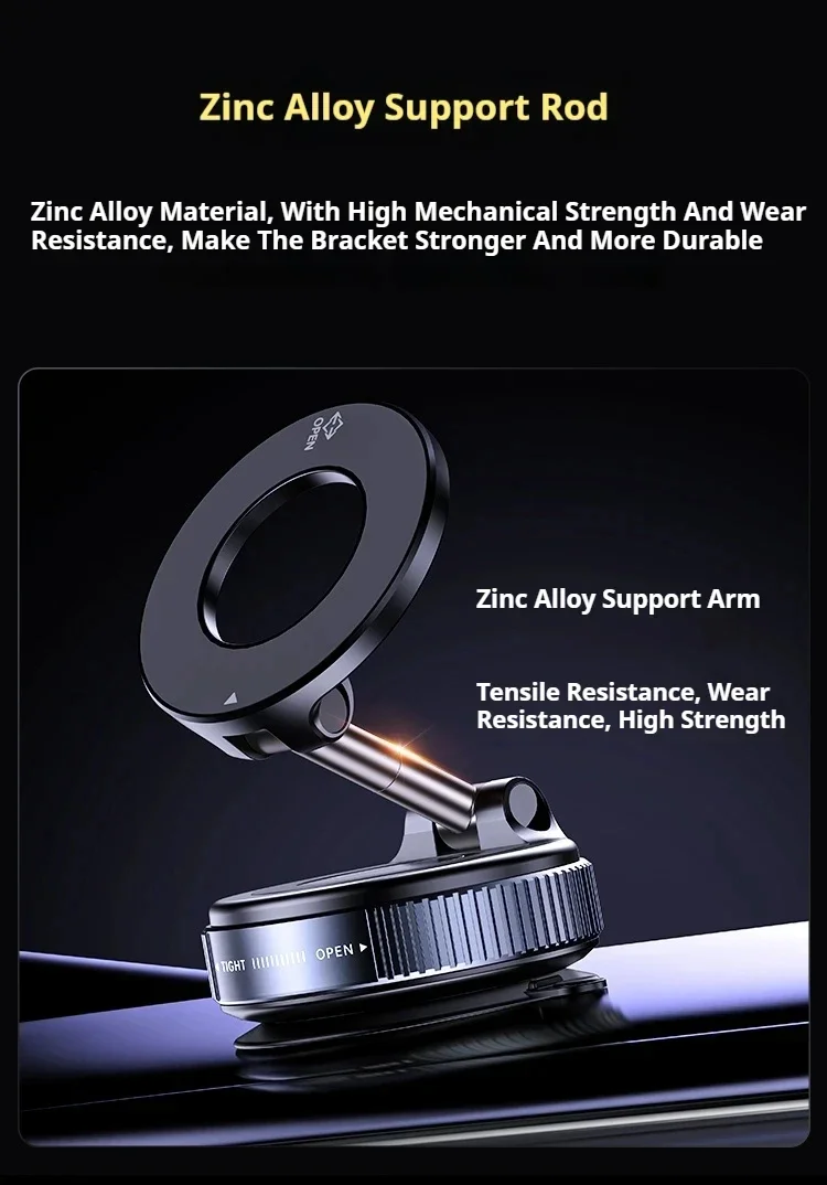 Made from high-quality aluminum alloy, this car phone holder is not only durable but also lightweight. It features protective silicone pads that prevent scratches on your phone and offer a non-slip grip, ensuring your device stays safe and secure.Vacuum Magnet Phone Bracket Multi-angles Adjustment Strong Magnetic Suck Design Foldable Car Holder For Navigation Stand
