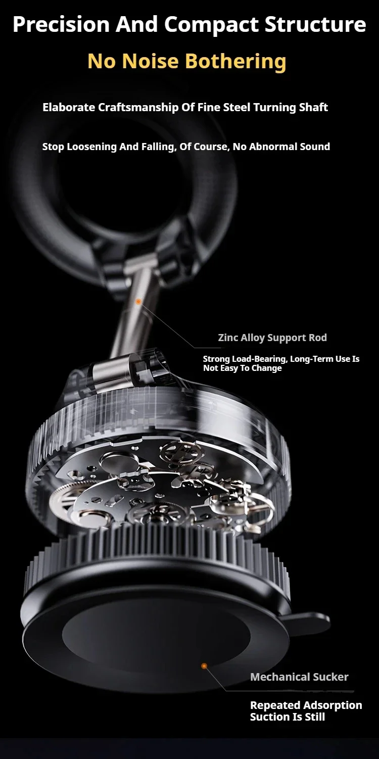 Featuring a vacuum suction design, this phone holder provides double-sided adhesion, allowing it to securely attach to various surfaces. Whether you're placing it on your dashboard or windshield, you can trust its stable grip for universal use.